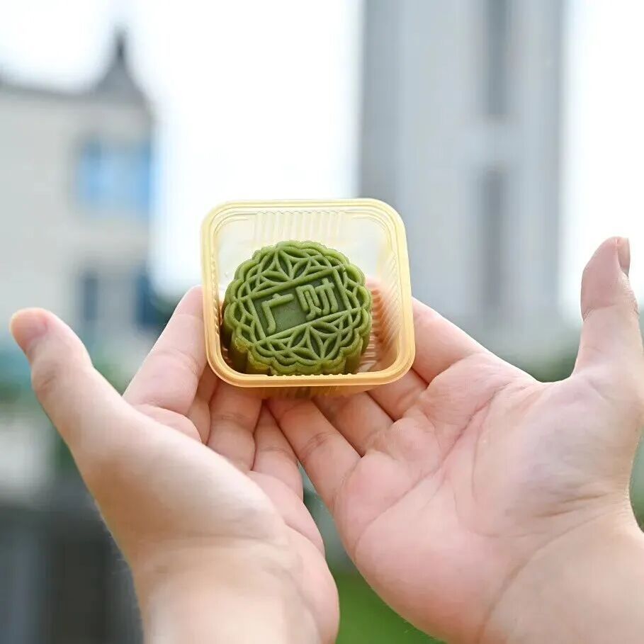 八颗独立包装的月饼整齐排列